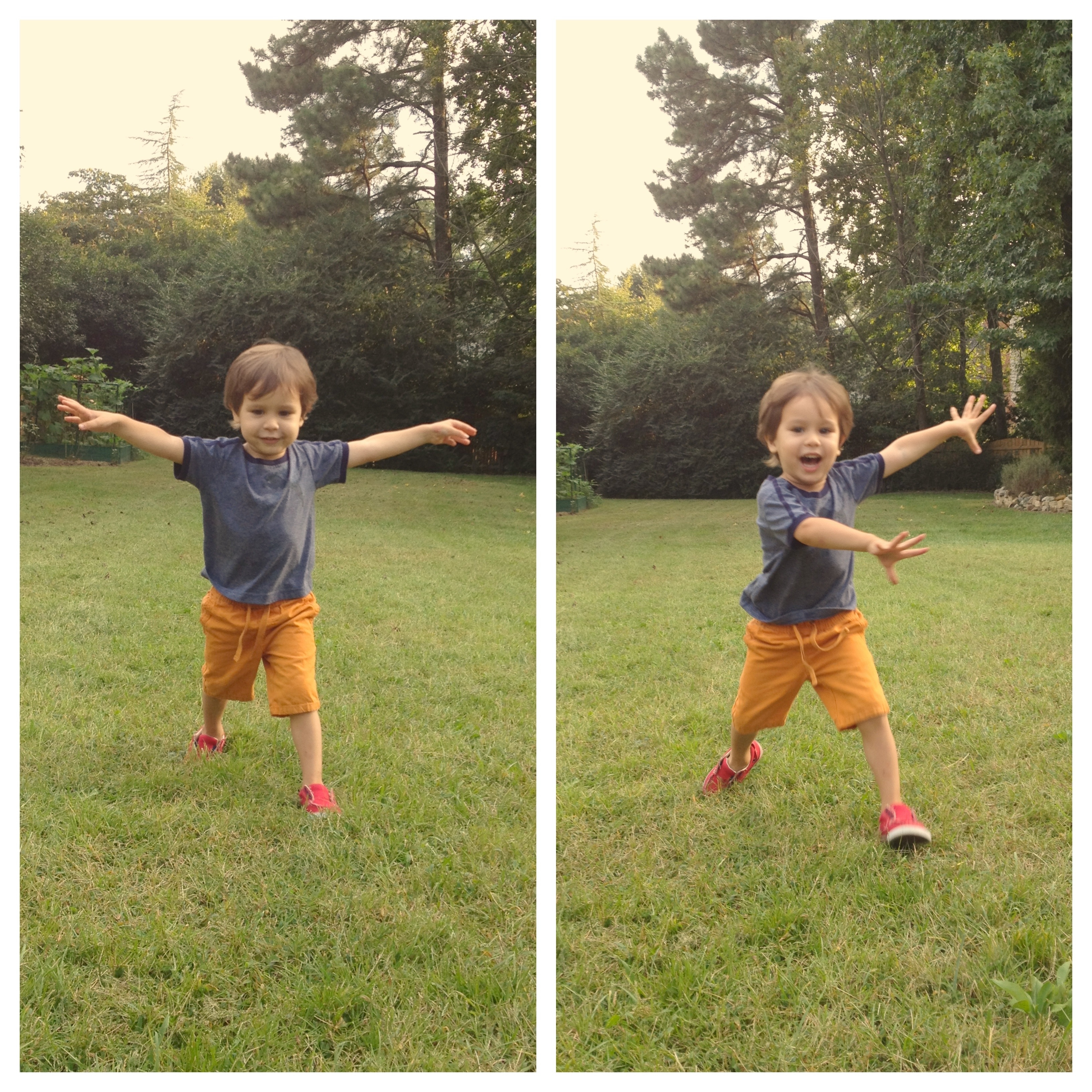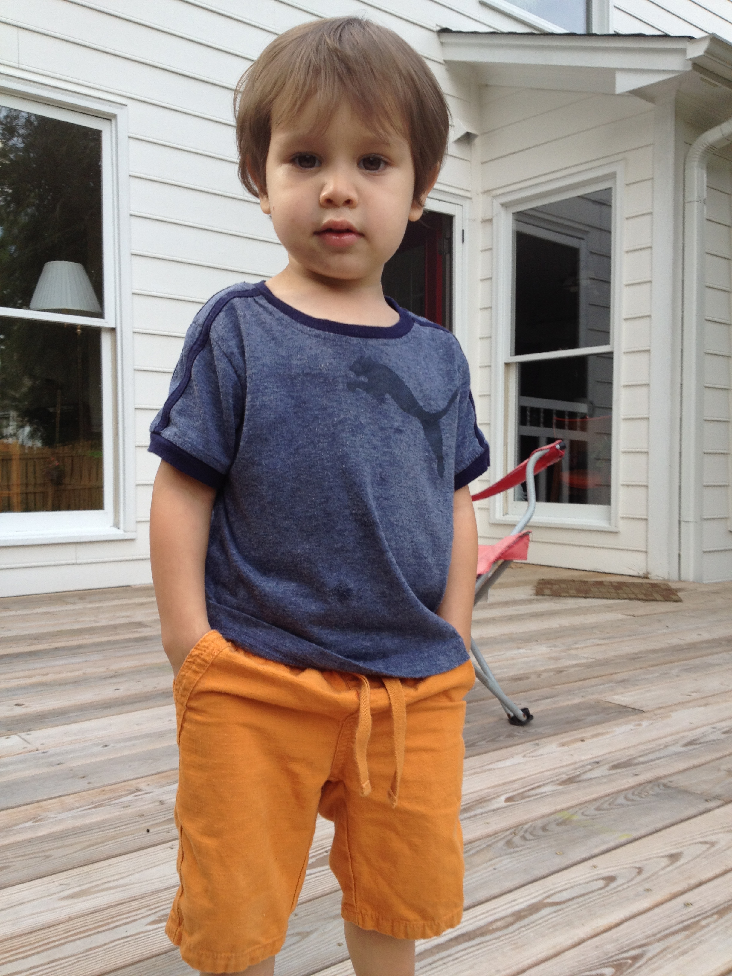 Today, I looked up as he followed J down the stairs and he looked like a kid, not my baby, not a toddler- a kid. In his navy shorts and  a bandaid on his finger and scrapes on his knee, there he was – a little boy. And with every fibre of my body, I willed time to pause.