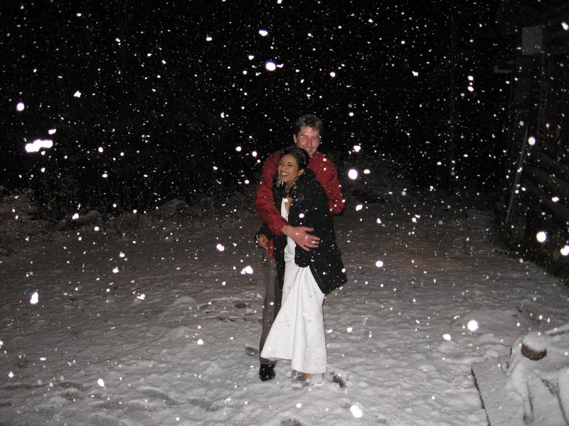 By mid afternoon , it was snowing quite heavily and the roads had definitely started accumulating snow. BD and a few other friend were in charge of the shuttle and drove people from the parking lot to the cabin. I spent the afternoon getting my hair and make up done and then I drove up to the Cabin with my parents and BD. I was left in the car , while they queued up and walked during the ceremony. I think that was the most nerve wracking part of the day for me.