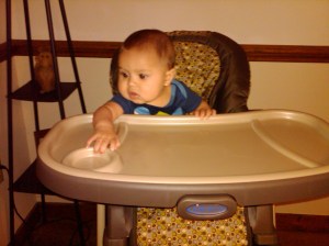 We were in dire need of a high chair. He had outgrown his bebe pod and was dragging it across the table. Also we were running low on baby containment devices in our living room. Enter clearance high chair from target. This was bigger and bulkier than what I wanted but Ikea was out of the one I wanted and if I couldn’t go sleek and modern, I was going big!