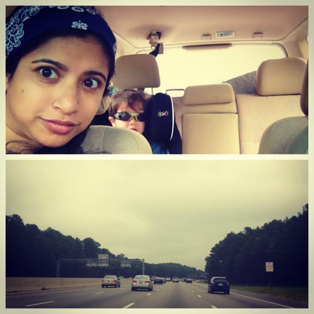 Heading out on I-40. Even though it was a very short drive, we did stop for snacks and coffee at Farmville just to get the road trip experience. Highlight of the stop J finding Bud Cheladas. They were perfect in the hot sun when we got into the campsite