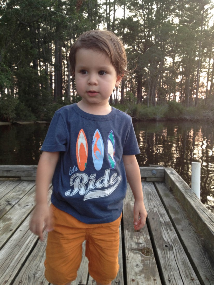 Today, I looked up as he followed J down the stairs and he looked like a kid, not my baby, not a toddler- a kid. In his navy shorts and  a bandaid on his finger and scrapes on his knee, there he was – a little boy. And with every fibre of my body, I willed time to pause.