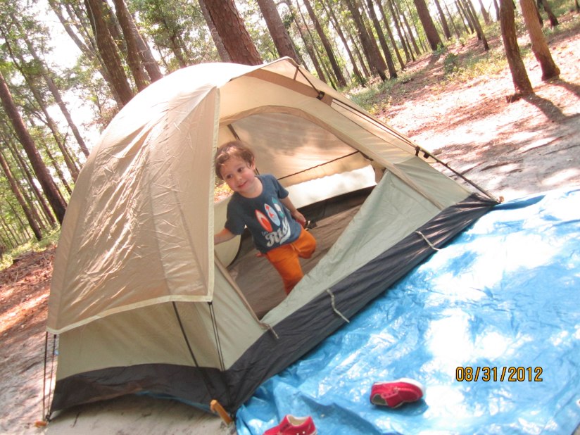 Bun was thrilled with the tents. He just wanted to go in and out and in and out and the cuteness wore off once we realized how much sand and bugs he dragged in there with him each time. However, our campsite was quite lovely, very secluded and shady. The bugs were pretty terrible but thats to be expected in a swamp.