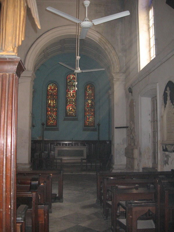 Inside St. John’s church. The fans are such a Indan touch. This church also had the most awesome shutters on its huge windows, and it had some cool stained glass as well.
