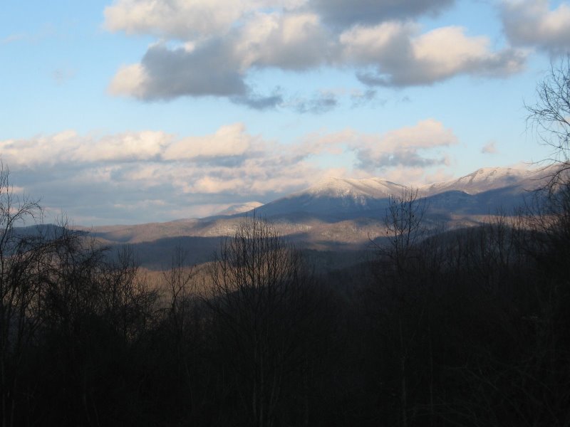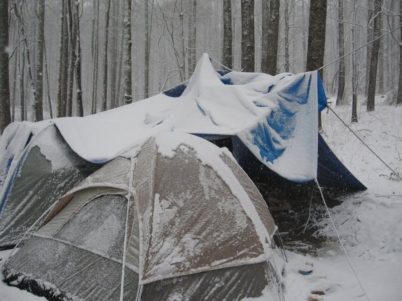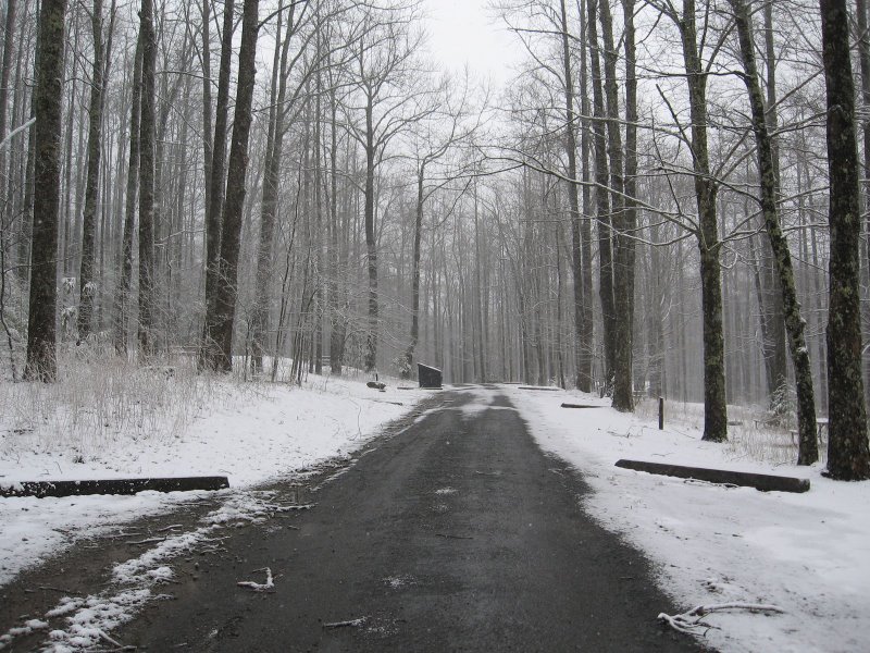 Last weekend was the tail end of my spring break and J and I took a trip to the Smoky Mountain National park with our friends JE and Er. The weather was supposed to be rainy with a chance of flurries, but we decided to risk it anyway. We were going to leave early friday morning and get to the park by the afternoon but anyone who knows me and J knows that we are incapable of waking up before noon. But we did manage to get up by 10, pack up the car , drop off the laylster at the kennel and hit the road by 1. We took a leisurly drive and then as we got close to the the NC side of the park, we made an error. I did not realize that our campsite – Cosby was in the Tennessee section of the park and was only accessible through only one park entrance. So J and I ended up driving through the highest points of the park, in the dark, while it snowed and with a thick fog ( they don’t call it smoky for nothing). We then had to drive through Gatlinburg and the surrounding areas and finally we made it into Cosby campground by 8.