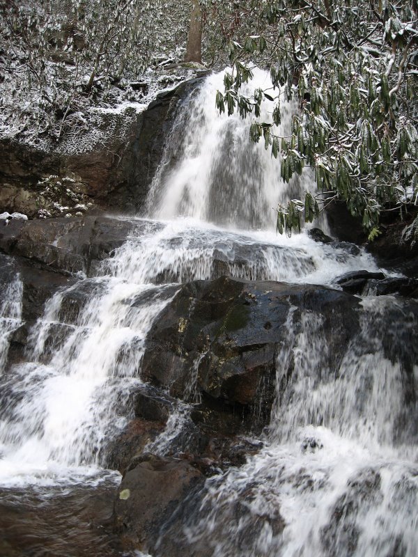The next morning, when I opened my eyes, I noticed white chunks on our tent and when I looked out, I saw snow everywhere. The boys once again were heroes and set to drying up the firewood and starting another fire and we had breakfast. The temperature had dropped severely and we decided to pack up and head out of the campground. We had a lunch at a cute little apple orchard, that had a store and a diner and ER and JE decided to head home. After much J and I decided to stay for the whole weekend. We spent the afternoon exploring some of the park and went on a hike to Laurel falls. For the night, we bargained ourselves a $40 motel room, that had not been updated since the 70s, it had green shag carpet, and wood panelling, very retro chic!