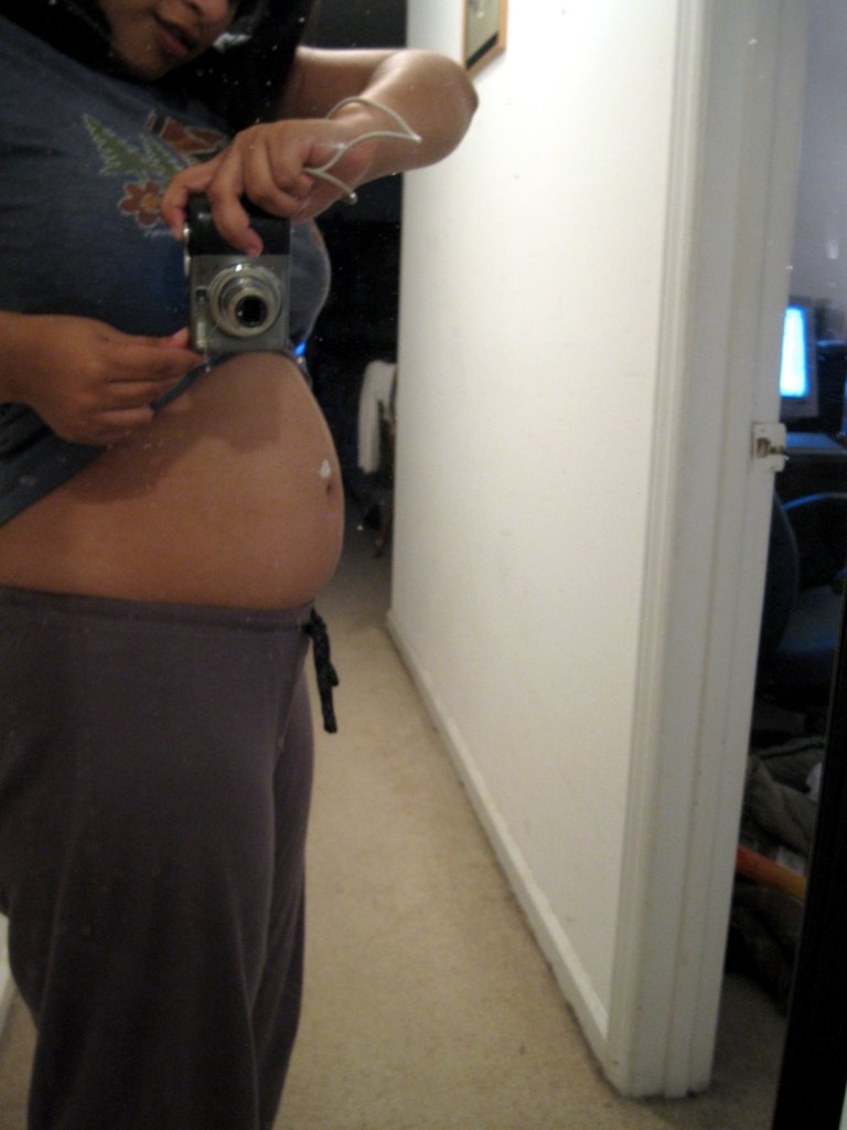 Well, I’ve been meaning to get some belly pics up for a while, so here they are finally! Wheee! yes, they aren’t the most quality pics and I sort of was in a hurry last night to get to sleep, but it gets the job done.