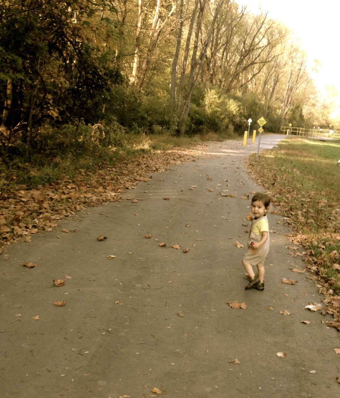 When we drove home, Bun didn’t want to go inside so we headed out to the trail behind our house for some leaf stomping fun.