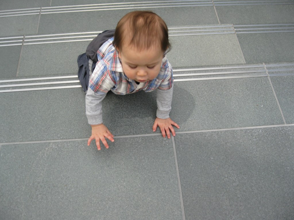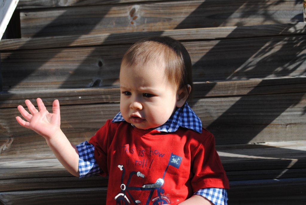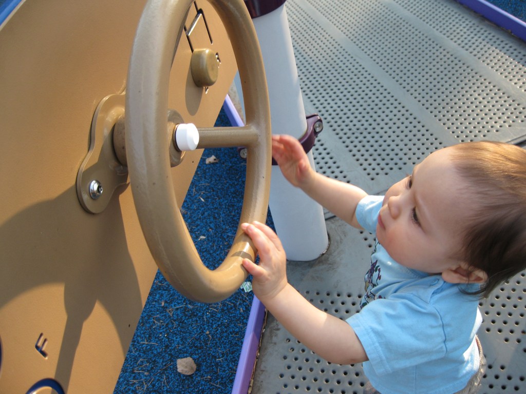 He also went down the slide on his own for the first time- We taught him to lie down on his back and slide down and of course we were right there to catch him. And of course we had him go down the littlest one.