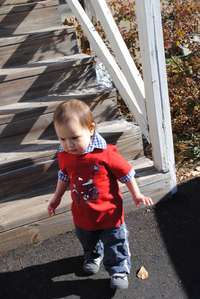 He played happily with twigs and grass for at least 45 minutes and then we took our little walk around the yard and went home.