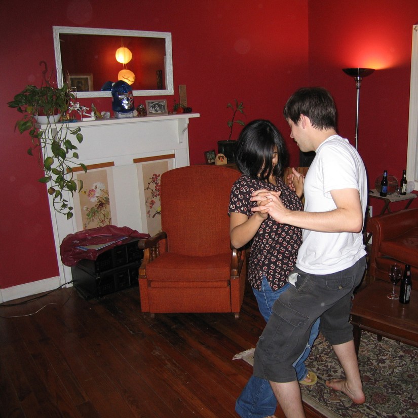This is an old photo of me dancing with a very dear friend on a random friday night in his living room.