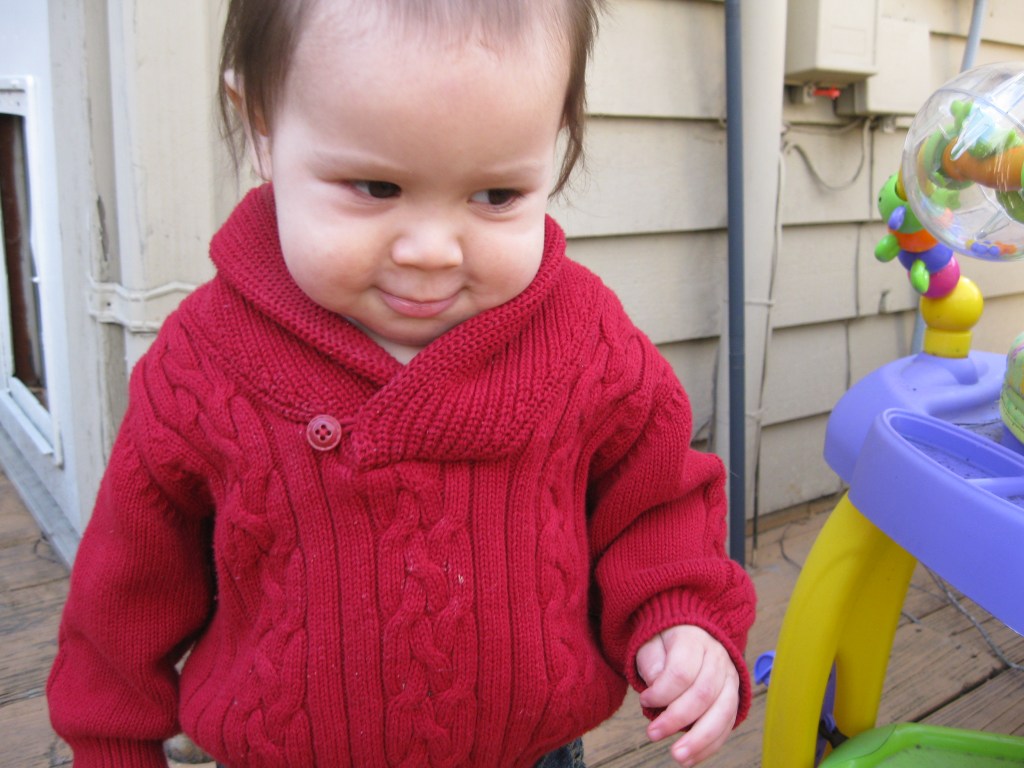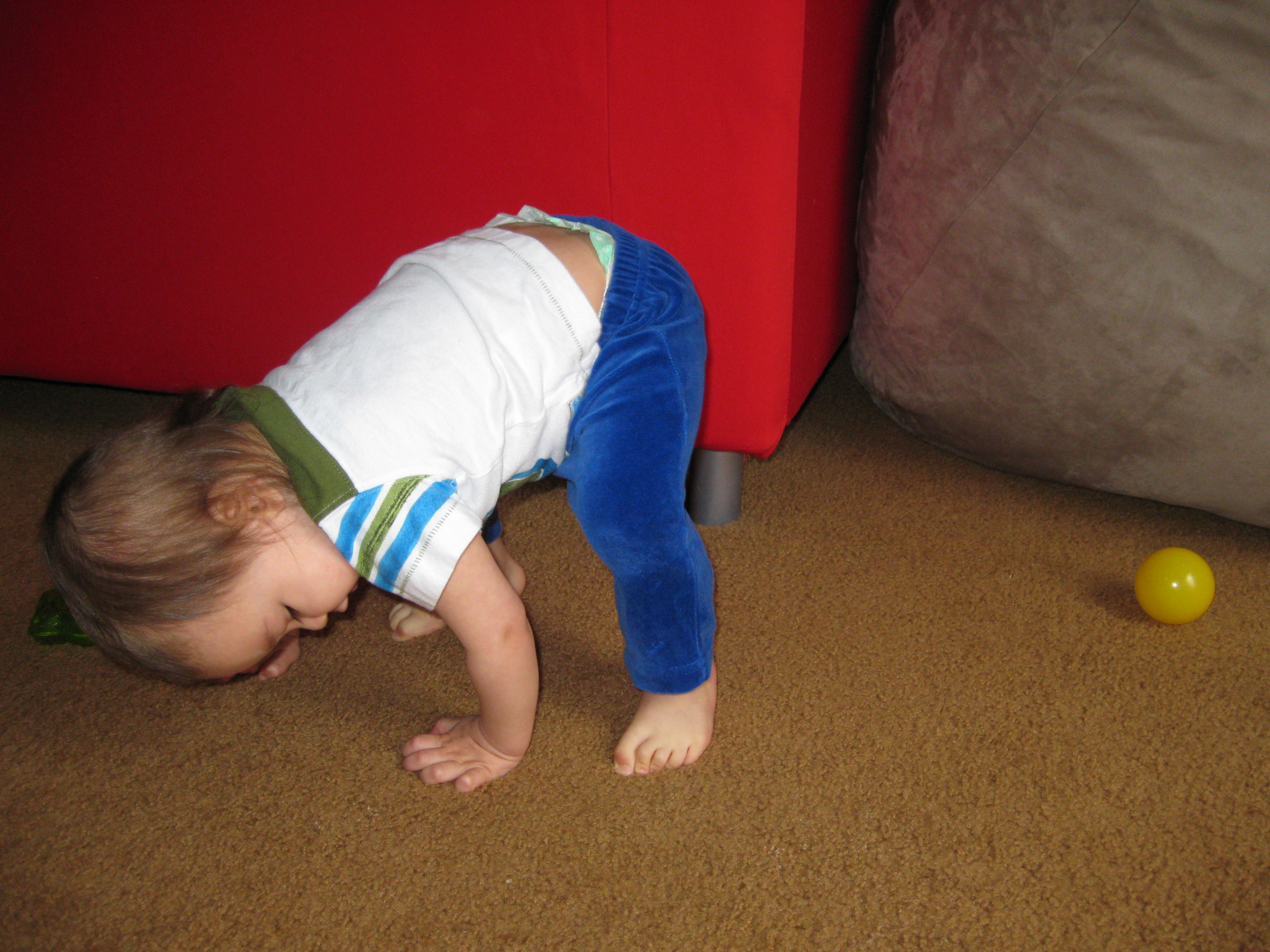 The best part about 15 months is Bun’s desire to communicate with words. The favorite word this month is “Done” He uses this word like a pro and uses it to let me know when he is just not interested in doing what I want him to do. His other new words are “Pish” for fish and ‘Kawpee” for coffee, and “Appeeel” for Apple. He also loves to make animal sounds and truck sounds and his repertoire includes Fire truck, Dump Truck, Truck, Cow, Dog (although his dog sounds don’t sound like any one else’s), Snake, Wolf, Lizard (not really a sound, but he sticks his tongue out), Duck and Birdie. He is currently working on learning hoot hoot for owl.